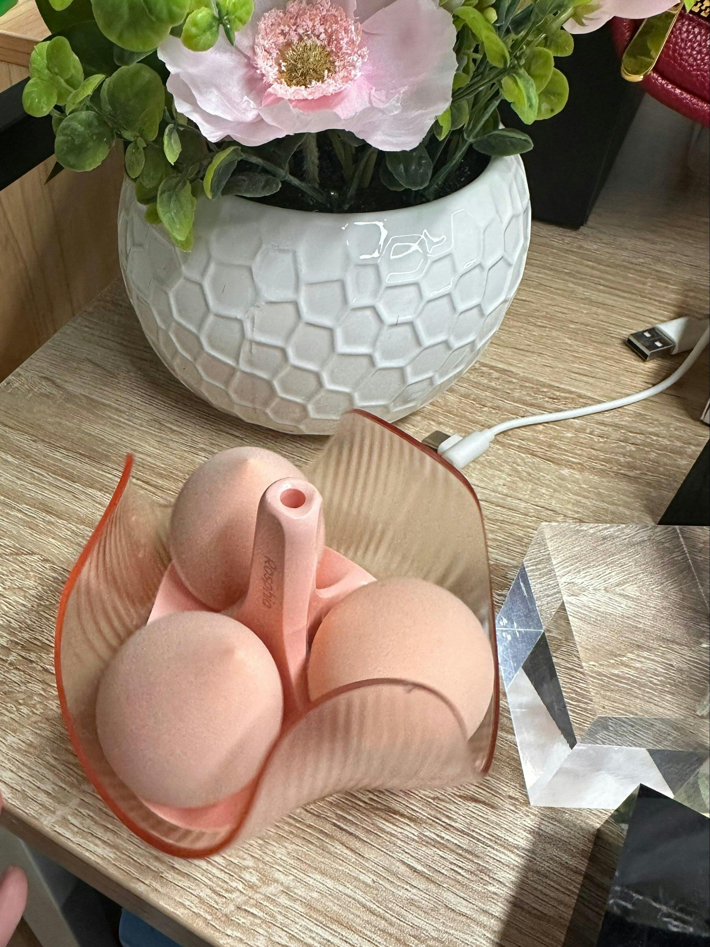 Inspired by the first bloom of spring, the petal-shaped organizer cradles three whisper-light beauty sponges — for a natural, dewy finish. A refreshing beauty essential to brighten your vanity.